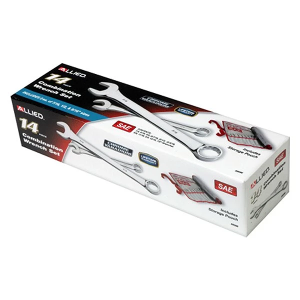 14-Piece SAE 12-Point Angled Head Combination Wrench Set by Allied Tools®. This product is made of high-quality materials to serve you for years to come. Designed using state-of-the-art technology and with customers in mind. It will meet your needs and deliver great quality at an affordable cost.
