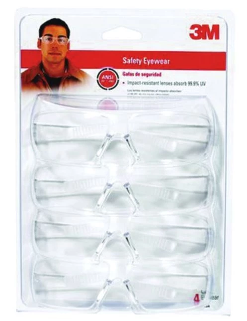 Protect your eyes and stay focused on the task at hand with the help of 3M Safety Eyewear. An excellent choice for you and all of your crew, these safety glasses help block small flying objects or particles, while providing essential protection from harmful UV rays. The sleek, wraparound design offers a flush, low-profile look. They’re available in two lens types, clear and tinted–so there’s a great pair for your job. Maintain great visibility while keeping your eyes safely shielded with the scratch-resistant protection of 3M Safety Eyewear.•Durable lenses help provide limited protection from light to moderate impact hazards •Contoured design•Lightweight – weighs less than 1 ounce•Scratch-resistant coating helps keep vision clear •Impact-resistant lenses block 99.9% of UV rays•Meets the requirements of ANSI Z87.1, CSA Z94.3 •Clear lenses help provide excellent visibility and can be used indoors or outdoors