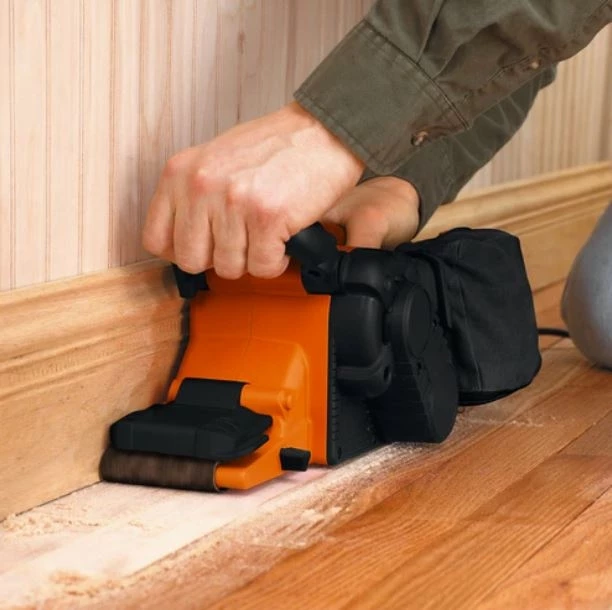 Featuring a high-performance, seven-amp motor, this electric belt sander sands close to the edge of adjoining surfaces. A retractable hood exposes the sanding belt for enhanced versatility, especially in tight spaces.