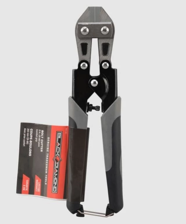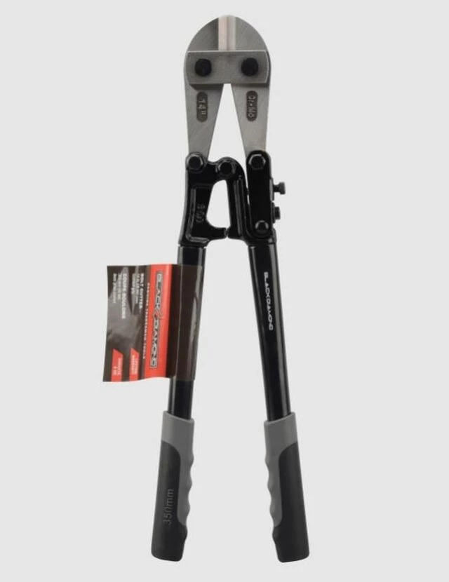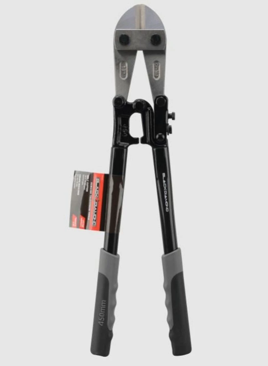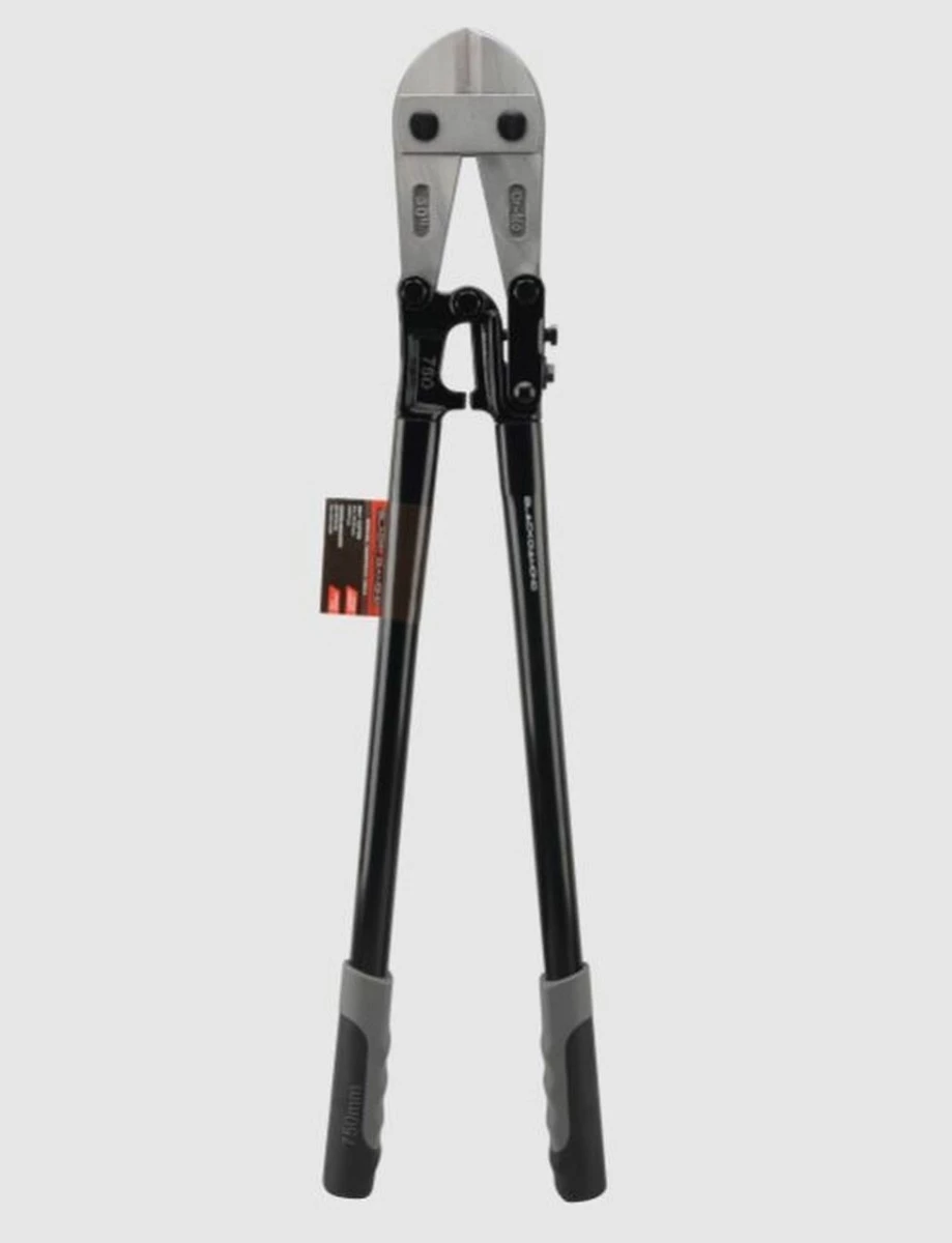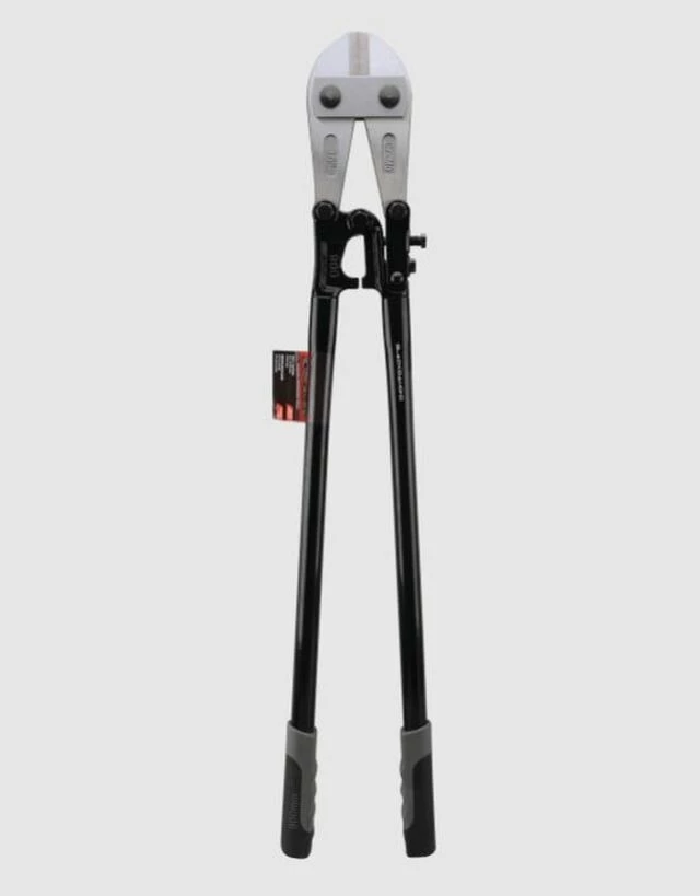 This bolt cutter has heat-treated CR-MO jaws, adjusting screws allow for easy and perfect alignment of jaws, anti-slip egonomic PVY grips.