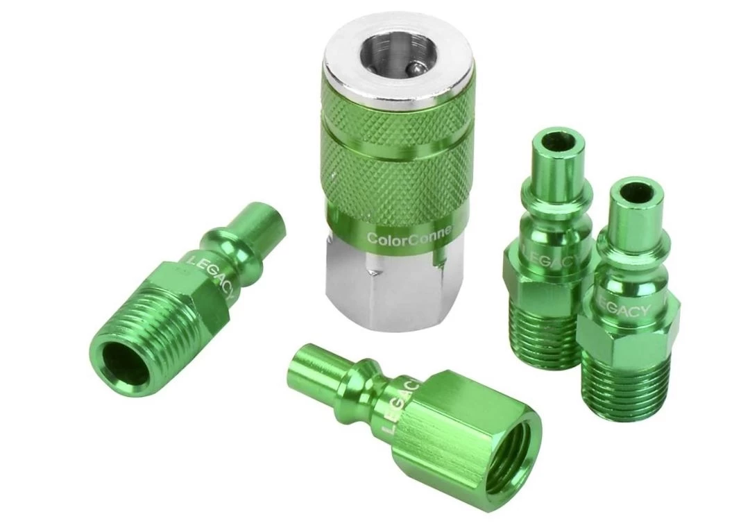 The ColorConnex patented color code system allows for easy color to color matching of couplers and plugs among standard pneumatic interchanges. It also solves the problem of potential crossing and contaminating of different air lines. By using color to dedicate your different air lines, a lubricated line will never be used for a dry line application as long as your couplers and plugs match.
