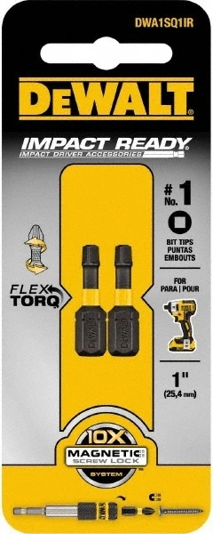 DEWALT® IMPACT READY® accessories deliver exceptional performance for extreme torque applications. FlexTorq® bits feature an Extended FlexTorq® Zone* to transfer optimal torque in hard joint applications, providing durability & longer life.** The bit tip is CNC machined for a precise fit, reducing cam-out under torque.
