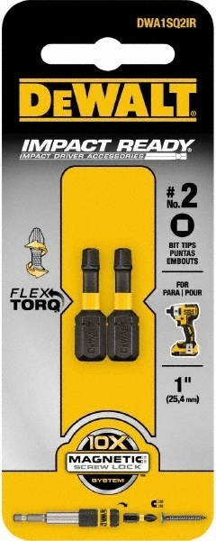DEWALT� IMPACT READY� accessories deliver exceptional performance for extreme torque applications. FlexTorq� bits feature an Extended FlexTorq� Zone* to transfer optimal torque in hard joint applications, providing durability & longer life.** The bit tip is CNC machined for a precise fit, reducing cam-out under torque.