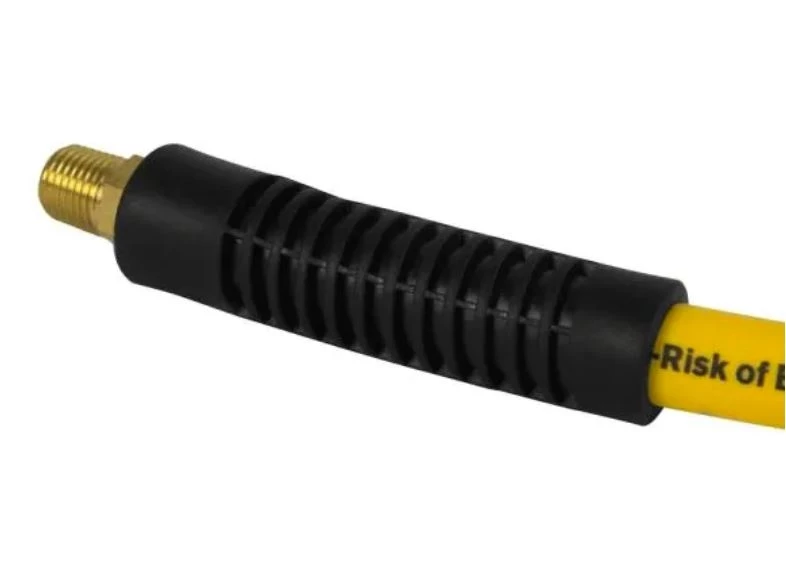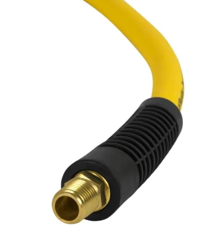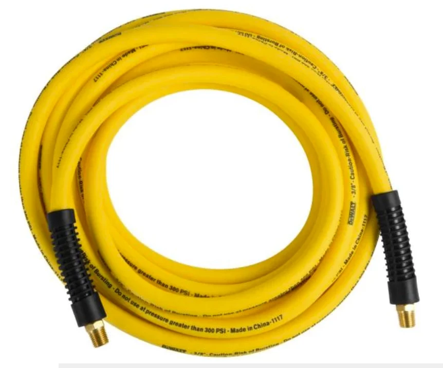 The DEWALT 3/8 in. x 25 ft. Premium Hybrid Hose provides ultimate flexibility and memory resistance even in extreme temperatures. This air hose stays flexible to work with, even at 40°F below zero, yet still takes the heat up to 175°F without swelling or bubbling. The hose is kink and oil resistant under pressure. This rubber hose comes complete with solid brass 1/4 in. NPT male end fittings which never corrode and bend restrictors that prevent hose kinking and reduces wear and tear, prolonging the life of the hose. The DEWALT 3/8 in. x 25 ft. Premium Hybrid Hose is the perfect accessory for any air tool and any air compressor that operates at 300 PSI or less.