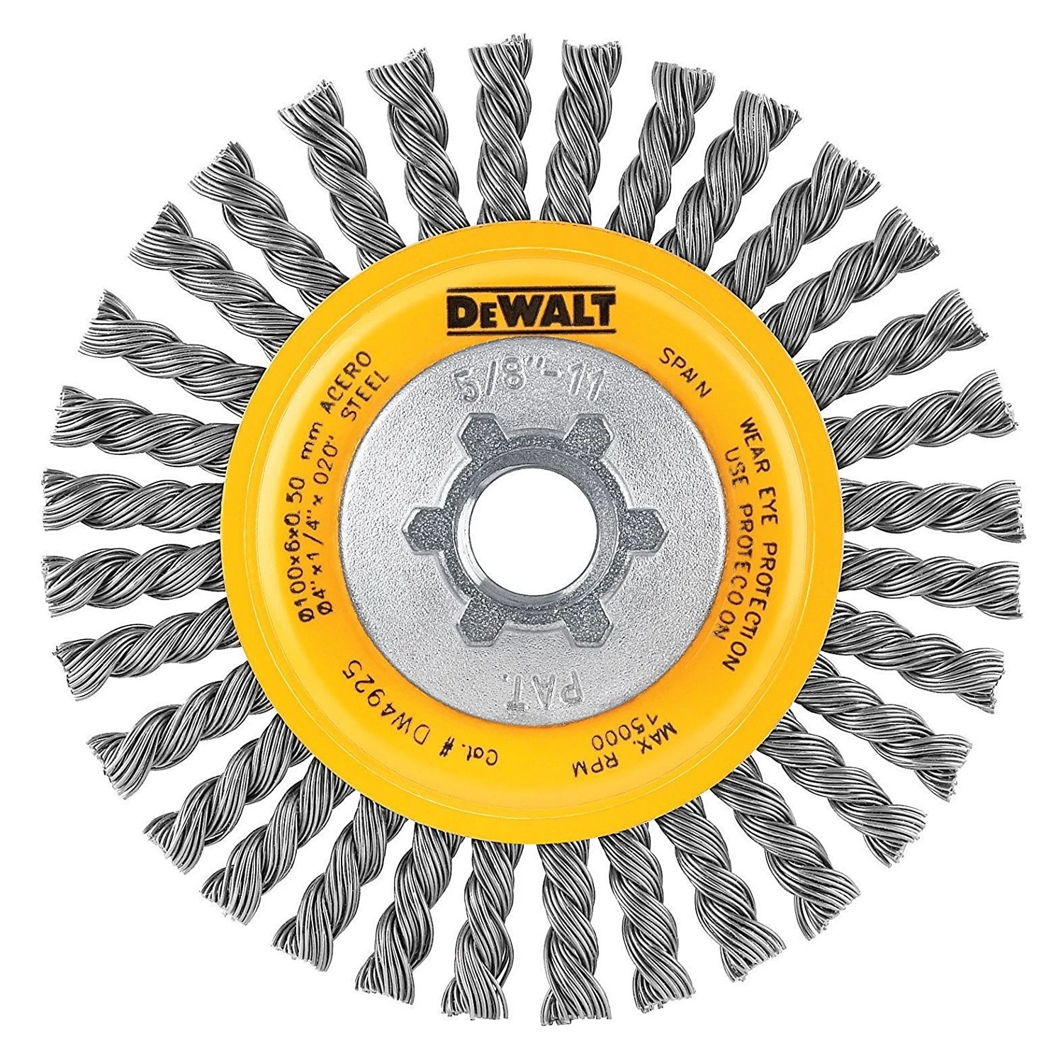 Featuring high-tensile, heat-treated carbon or stainless steel wire, DEWALT HP Wire Wheels offer long-lasting, aggressive brushing action. An innovative internal holding plate construction provides helps to reduced knot movement and helps to increased control and brush life. Delivers smooth performance, with crimped wire for flexibility.