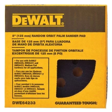 The DWE64233 5″ Hook and Loop Pad – Medium is an eight hole replacement pad for sanders with dust collection.