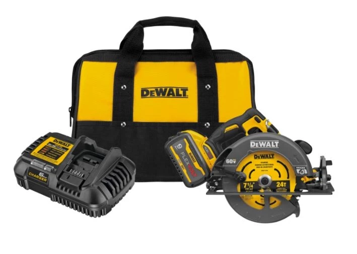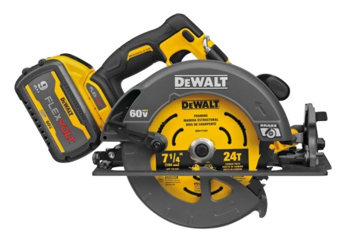 Our most powerful tools just got better with the 60V MAX* 7-1/4 in. circular saw with electric brake. It has up to 47% more power than the DCS575 60V MAX* circular saw** with 2456 unit watts out. With a no-load speed of 5800 RPM, this saw delivers the power of a corded circular saw with the portability and convenience of cordless through revolutionary DEWALT FLEXVOLT technology.