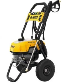 You can rely on the durable, mobile, and powerful DEWALT 2400 psi Pressure Washer, delivering enough power to handle your outdoor cleaning tasks. Be prepared to tackle just about any job or wash your vehicle with the accessories you need. This Cold-Water Pressure Washer comes equipped with five nozzles, including a Turbo nozzle and built-in storage for organization. Built to transport over rugged terrain, the pressure washer features premium 10 in. pneumatic wheels so you can take it to the jobsite. The 2400 PSI Cold-Water Pressure Washer is backed by a 3 Year Limited Warranty.