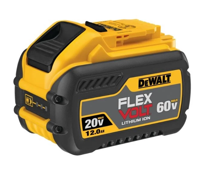 The FLEXVOLT® 20V/60V MAX* 12.0 Ah battery provides up to 8X runtime** in 20V MAX* and delivers ultimate power in 60V MAX* and 120V MAX* cordless tools*. It changes voltage when you go from 20V MAX* to 60V MAX* tools. Lithium Ion technology delivers performance in the same size as our 9.0 Ah battery, so it is more powerful in as compact a package as possible. It also includes a built-in LED Fuel Gauge for instant charge status, and is compatible with 20V MAX* tools and chargers.