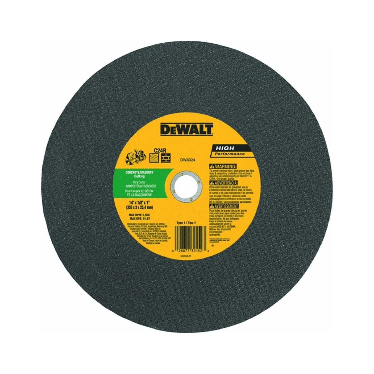 Power through tough masonry, including brick, block, and pipe, with DEWALT Type 1 HP Masonry Cutting High Speed Wheels. Features premium grain for optimal cutting speed and helps to increased wheel life. Double reinforced with 2 full sheets of fiberglass to withstand extreme jobsite demands.
