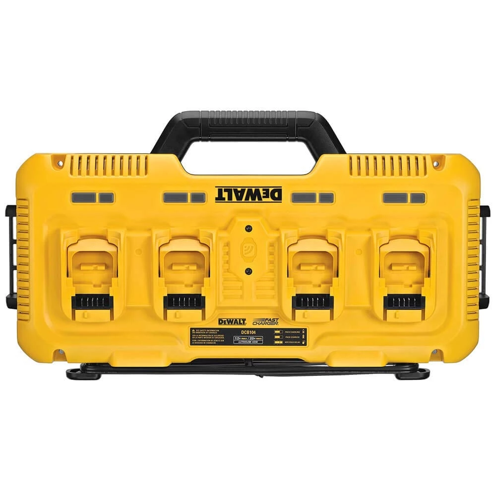 This charger is a four-port fast charger that charges 12V MAX, 20V MAX, and FLEXVOLT 20V/60V MAX batteries at the same time. This fast charger quickly charges a 4.0Ah 20V MAX battery in 40 minutes, and a 6.0Ah 20V MAX battery in 60 minutes. It is also designed to fit our Tool Connect Tag, and is ToughSystem compatible.