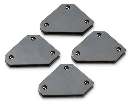 Multi-purpose mini-magnets hold steel pieces in place at 45, 90 and 135 degree angles.