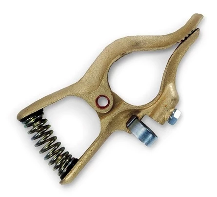 Brass, T-style work clamp with a 400 amp rating. Grooved 1-1/2 inch jaw opening for excellent grounding.
