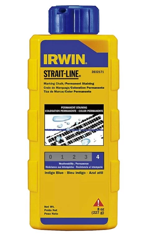 This IRWIN STRAIT-LINE Standard Marking Chalk creates temporary marks that provide great visibility. The versatile formula is designed for both interior and exterior applications. Each bottle of IRWIN STRAIT-LINE marking chalk features a flip-top cap that is specially engineered for an airtight seal that keeps moisture out and minimizes clumping.