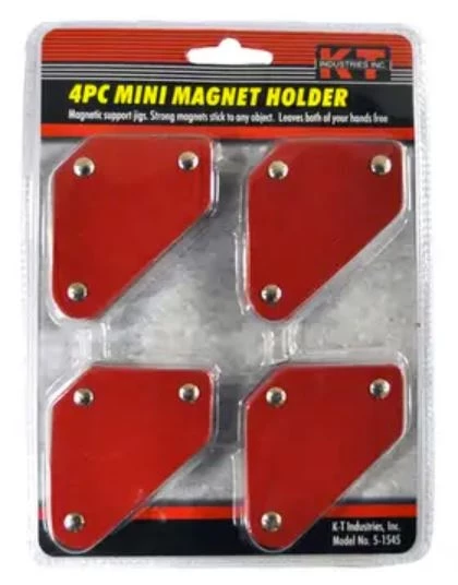Some welding projects make you wish you were an octopus. Something as simple as a frame has you trying to keep two pieces at a 90 degree angle while attempting to weld straight and you find yourself wishing you had eight arms. With a K-T Industries Mini Magnetic Holder Set you’ll have the extra help you need. These welding magnets hold objects at three different angles, so you can simply position the two pieces you need welded together on the appropriate magnet sides and do the work you need to do with both of your hands. These K-T Industries Mini Magnetic Holder Set are an essential addition to your welding supplies.