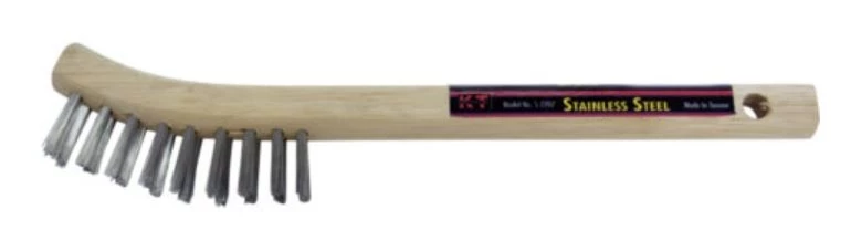 - Stainless steel bristles with wood handle