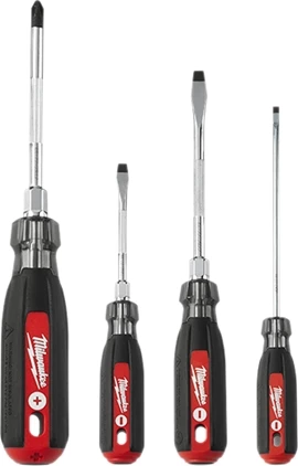 Our 4-Piece Cushion Grip Screwdriver Set provides you with professional grade solutions and durability. The professional screwdriver set features an anti-peel handle design, hardened tips, and forged shanks. Tactile identification, a new-to-world MILWAUKEE® innovation, allows you to accurately select the correct driver without looking. The wrench-ready bolster and precision knurling offers you the features needed to increase your efficiency and effectiveness on the job site. Each screwdriver in the set is backed by our Limited Lifetime Warranty.