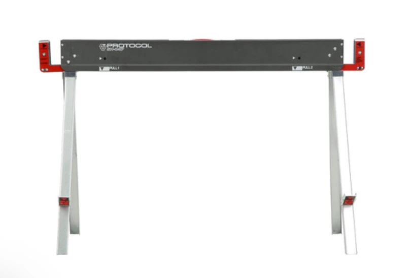 You’re not confined to a 4×4 cubicle, and your office certainly isn’t standard. You’re a true workhorse, whether you’re at the jobsite or in the garage. That’s where the PROTOCOL Equipment Work Table Folding Sawhorse comes into play. Constructed of high-grade, corrosion-resistant steel, this sawhorse features a remarkable 1,100 lb. table capacity. Innovative material support pegs allow for sturdy support while cutting, and 2 x 4 support arms allow you to create a jobsite table, in addition to a workbench, scaffolding support or any other useful rack you might need. The galvanized legs fold away for easy storage, and the built-in handle makes transporting them a breeze.