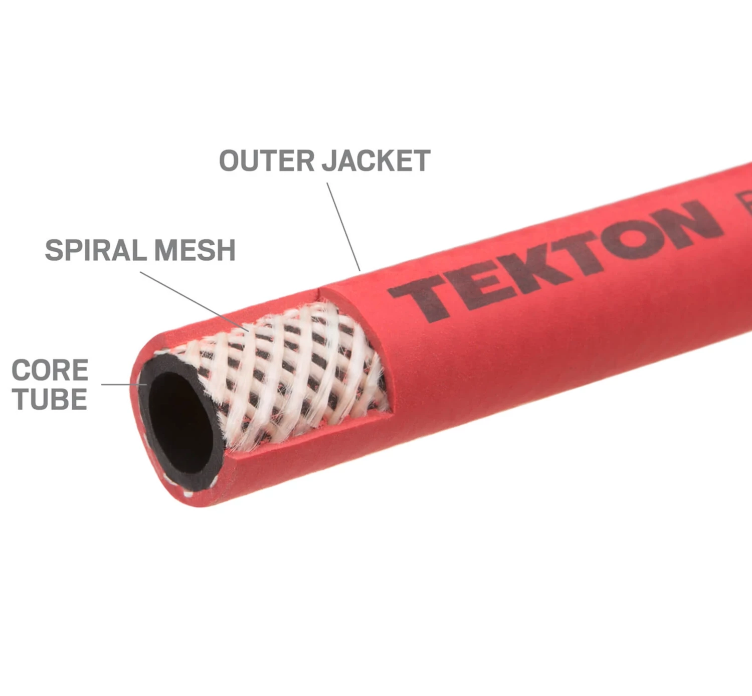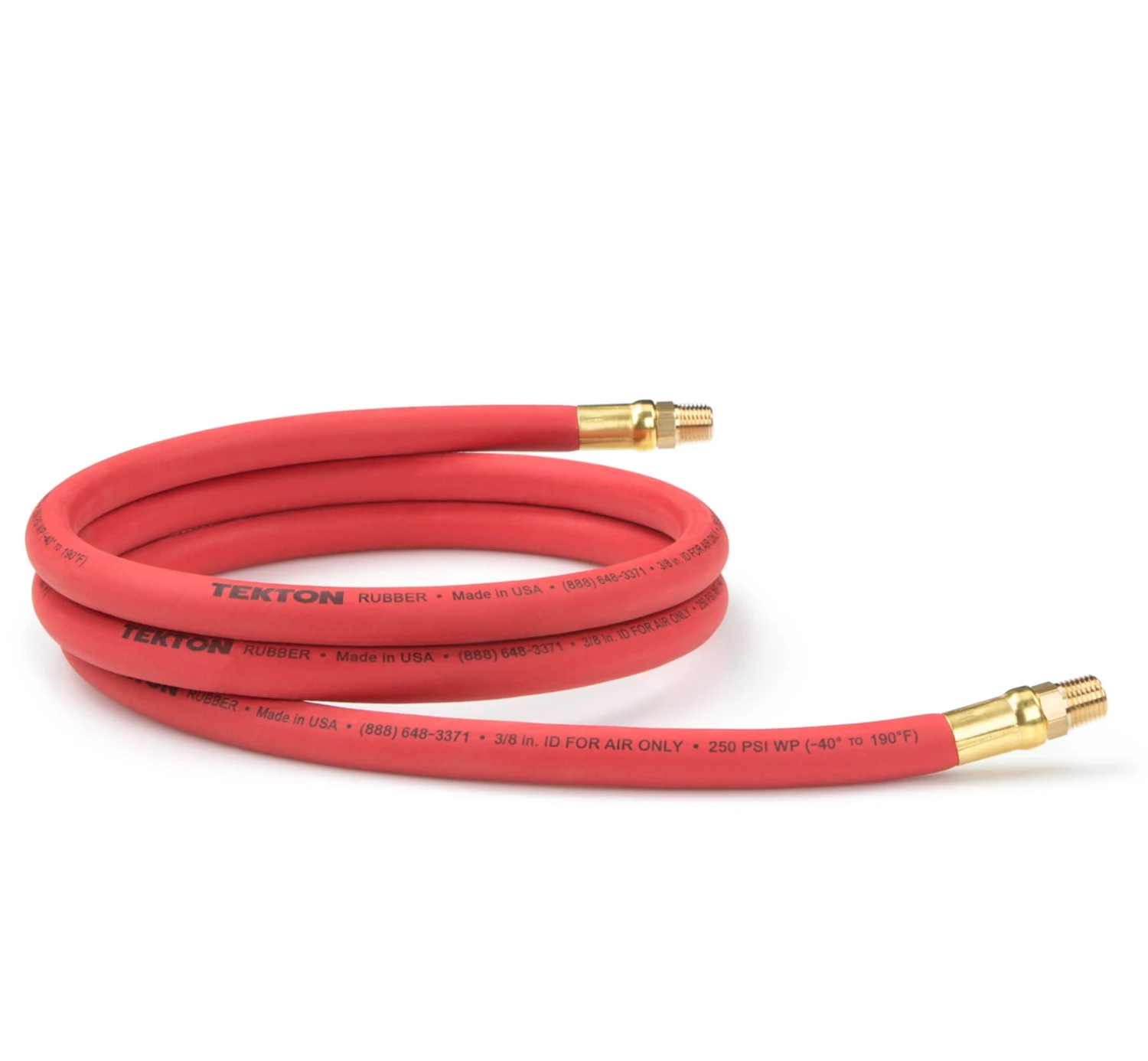 Outfitted with 1/4 in. NPT male ends, the TEKTON 6 ft. x 3/8 in. I.D. Rubber Lead-In Air Hose is ideal for making flexible connections between supply lines, hose reels, and other system components.